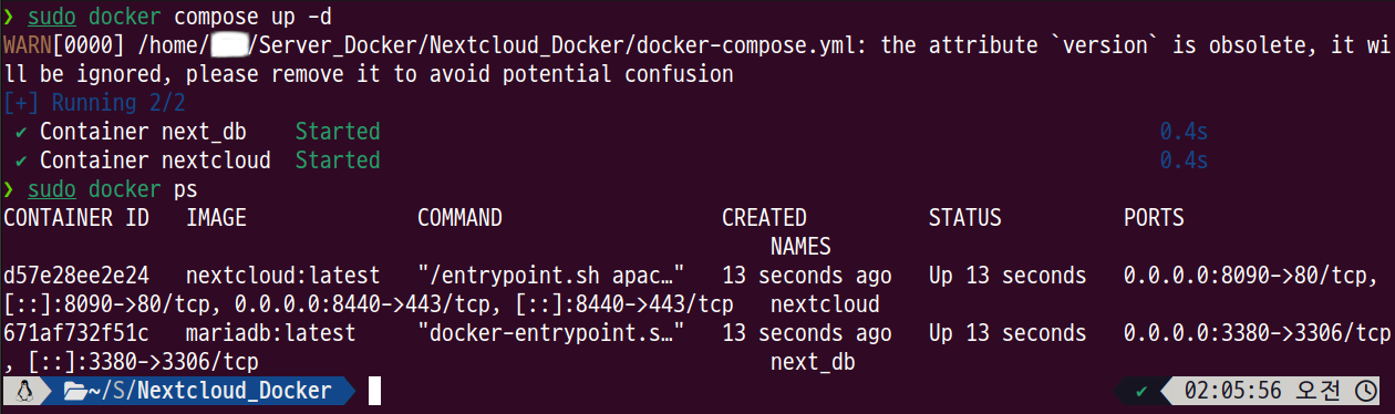 1. NextCloud 컨테이너 생성 및 구동 확인 (해당 포스트)