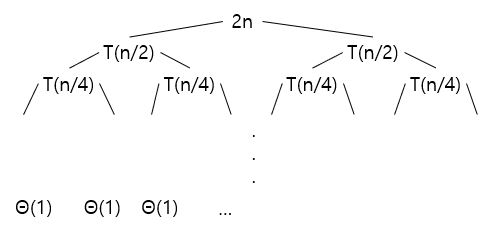 $T(n) \leq T(n/2) + T(n/2) + 2n = 2T(n/2) + 2n$
